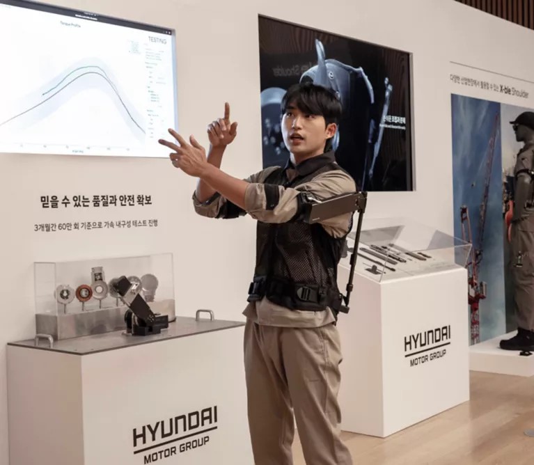 Desarrollado por Hyundai Motor y el Robotics LAB de Kia, el X-ble Shoulder está diseñado específicamente para trabajos que requieren levantar objetos por encima de la cabeza. Su utilización no solo fortalece los músculos del brazo superior del usuario, sino que también alivia la carga sobre el sistema musculoesquelético en las extremidades superiores.